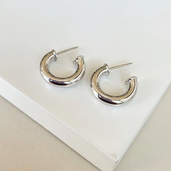 Descrição: Brinco de argola tubo pequeno. Produto hipoalergênico. Banhado a Ouro Branco