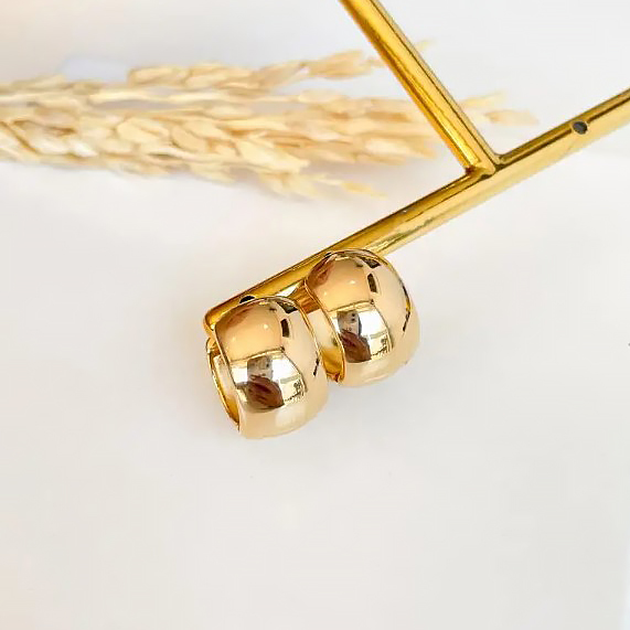 Descrição: Brinco formato de bola, liso com fechamento em click. Produto hipoalergênico. Banhado a Ouro 18K.