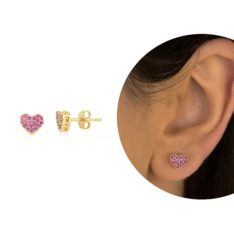Descrição: Brinco em formato de coração cravejado com microzircônias pink. Produto hipoalergênico.
