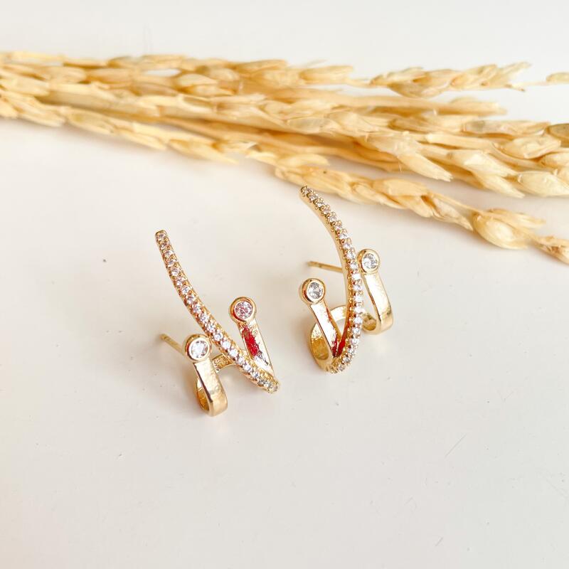 Descrição: Brinco em formato Ear Hook cravejado com microzircônias incolores. Produto hipoalergênico.