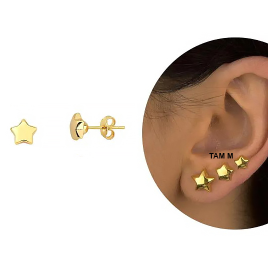 Descrição: Brincos em formato de estrela liso em relevo. Produto hipoalergênico. Banhado em Ouro 18K.