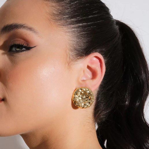 Descrição: Brinco em formato de circulo em chapa amassada. Produto hipoalergênico.