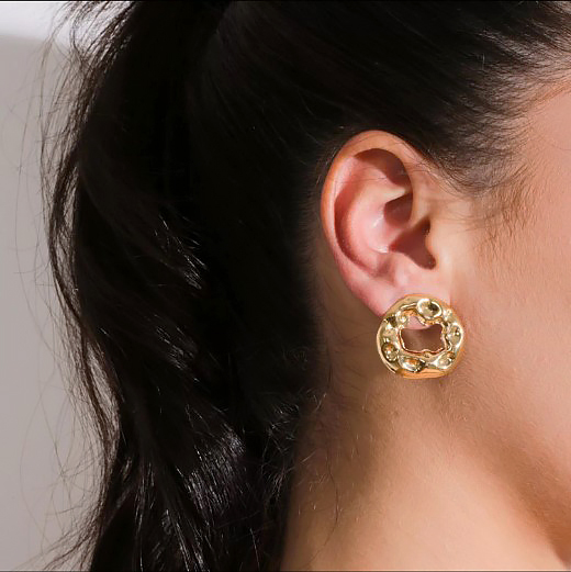 Descrição: Brinco em formato de circulo em chapa amassada vazado. Produto hipoalergênico.