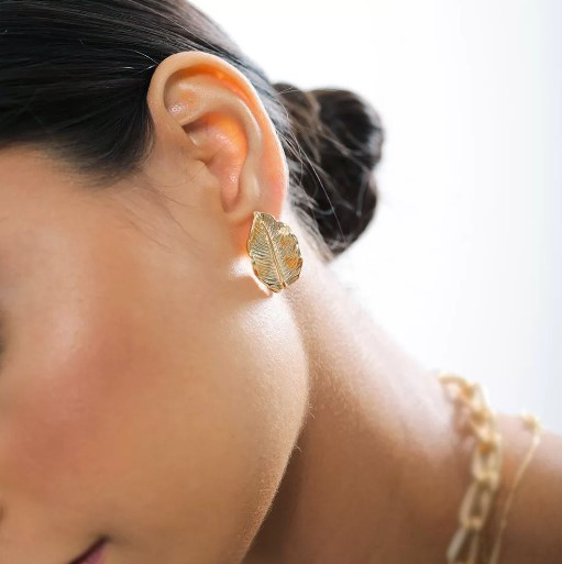 Descrição: Brinco em formato orgânico de folha. Produto hipoalergênico.