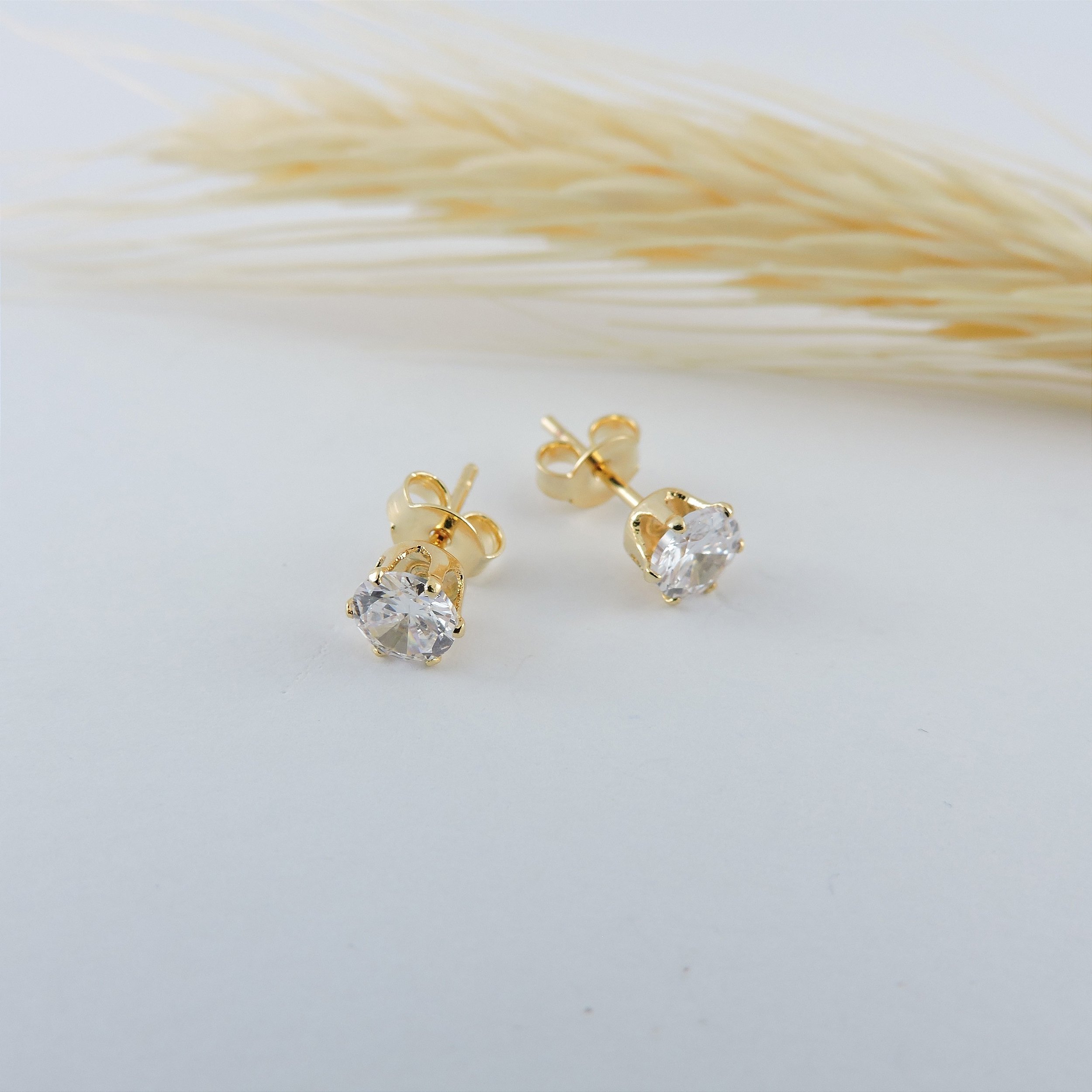 Descrição: Brinco ponto de luz com zircônia incolor. Produto hipoalergênico. Banhado a Ouro 18K.