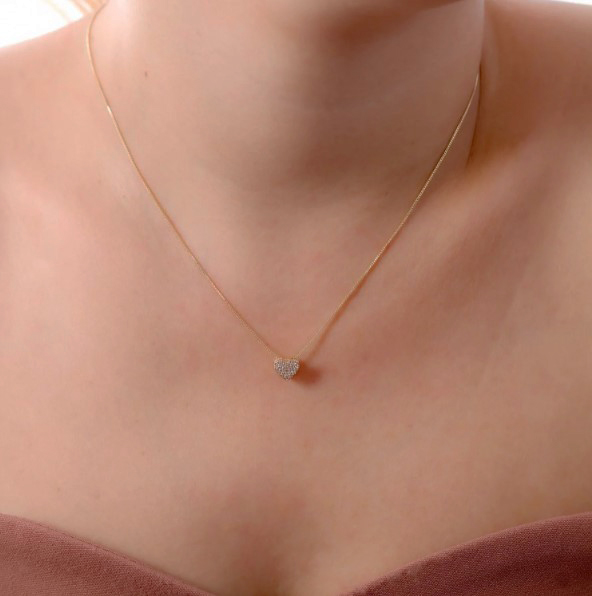 Descrição: Colar com corrente veneziana e pingente em formato de coração, cravejado com microzircônias. Produto hipoalergênico.