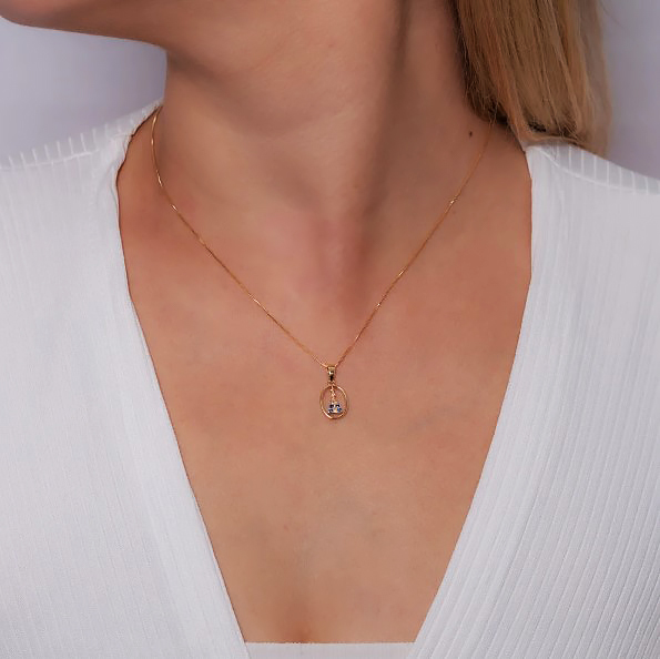 Colar com corrente veneziana e pingente em formato oval com Nossa Senhora Aparecida, com microzircônias. Produto hipoalergênico.