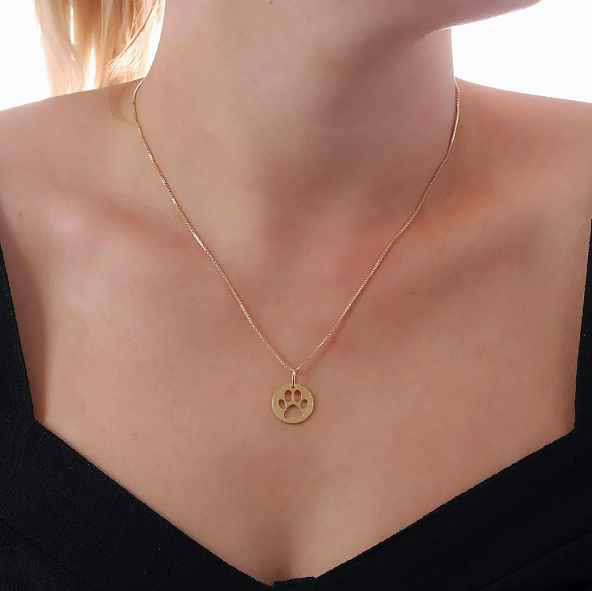 Descrição: Colar com corrente veneziana com pingente medalha de patinhas. Produto hipoalergênico.