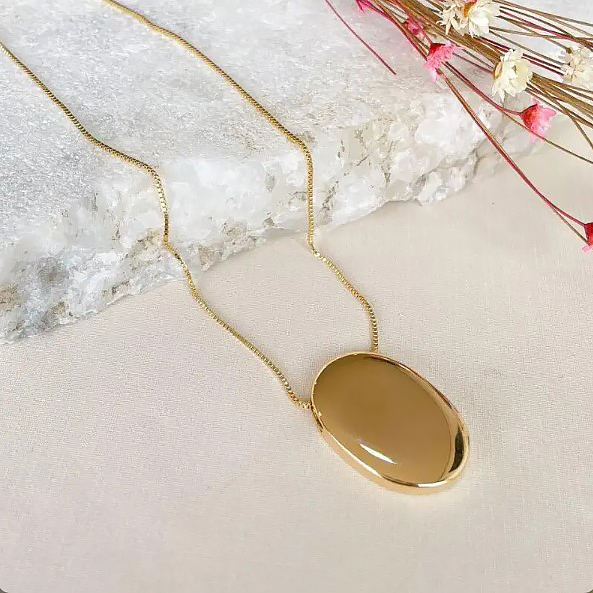 Descrição: Colar com corrente veneziana, com pingente orgânico. Produto hipoalergênico. Banhado a Ouro 18K.